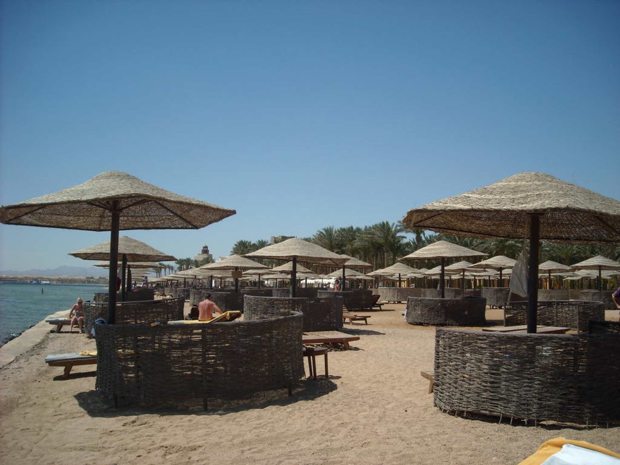 Liegen und Schirme am Strand