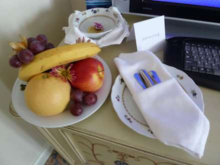 kleiner Obstteller als Willkommensgruß der Hotelleitung