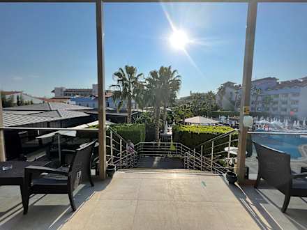 Treppe zum Restaurant und zu Aktionspool