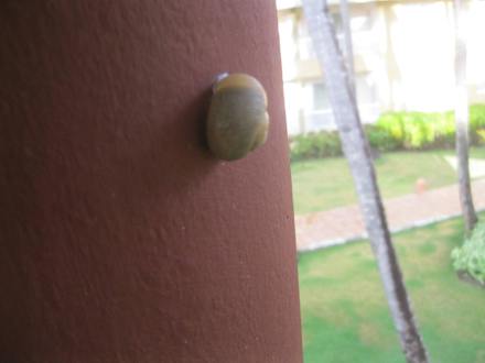 Ein Gecko hatten wir die ganze Zeit im Zimmer - diese Schnecke musste draußen bleiben.
