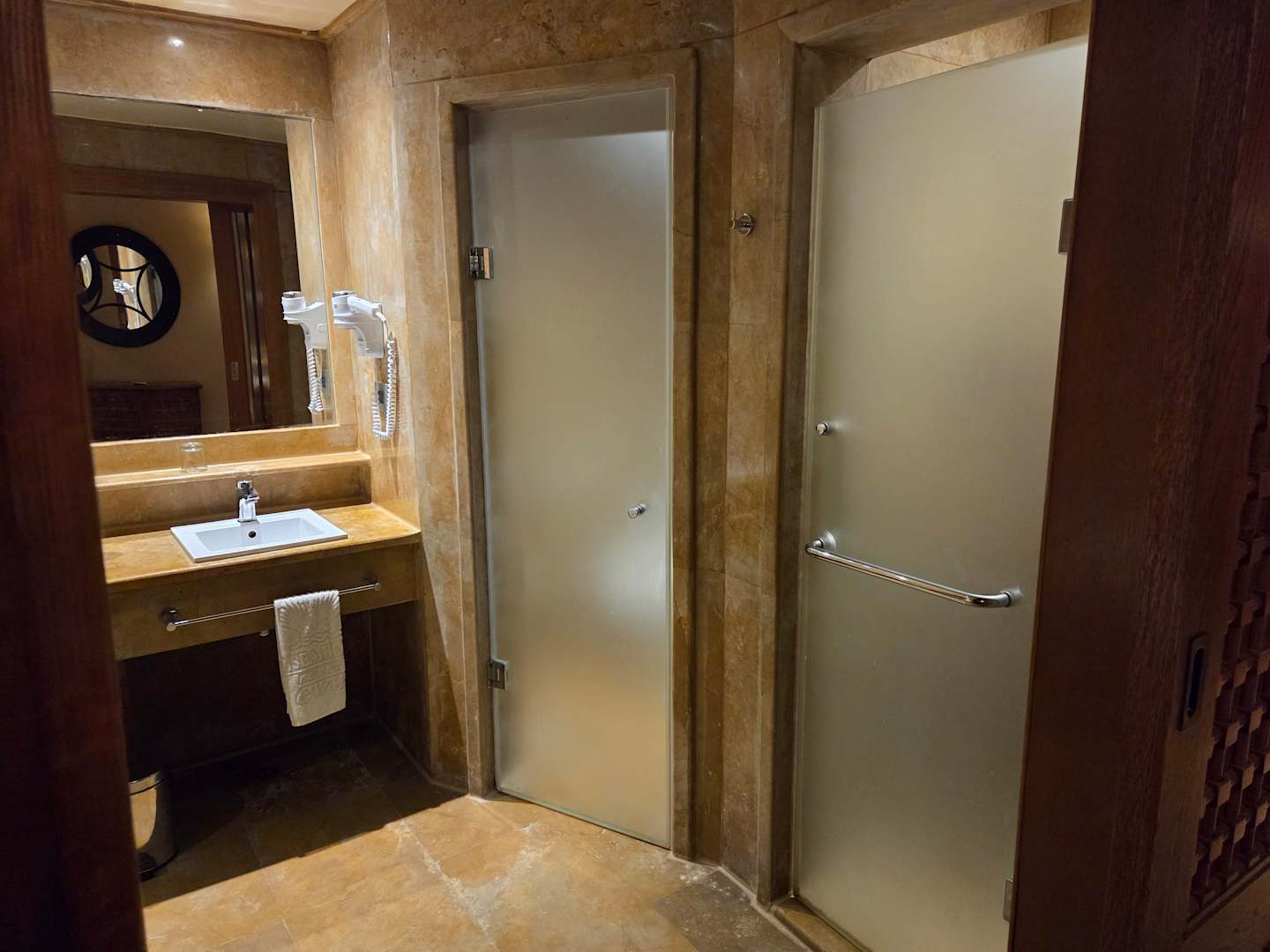 Links Toilette, rechts Dusche
