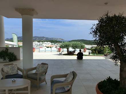 Ausblick vom Rezeptionsgebäude über die ANlage bis zum Meer