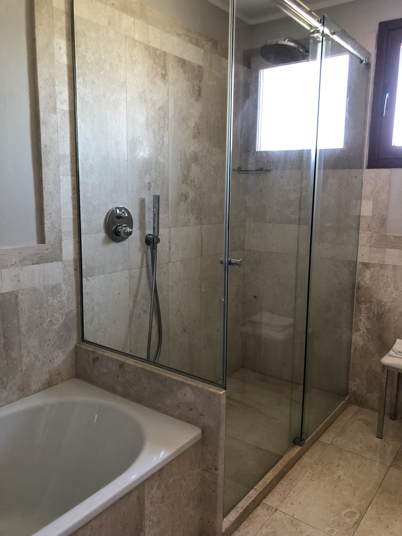 Badezimmer mit Badewanne und Dusche
