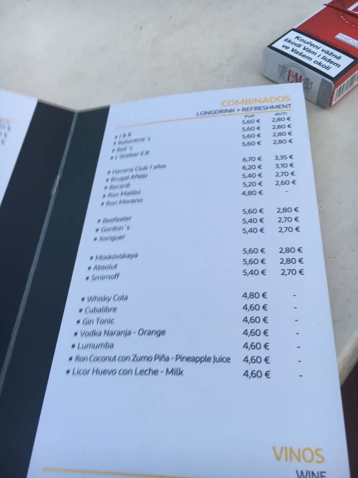 TJ Getränkekarte Abendanimation
