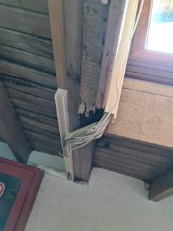 Mit genügend Kabel hält der gebrochene Dachbalken auch wieder.