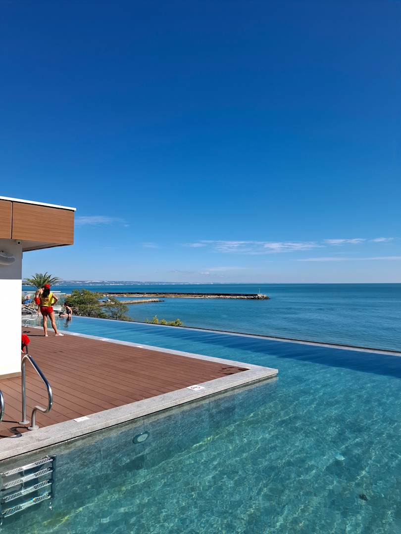 Ausblick von der Dachterrasse (Outdoor-Pool unbeheizt)