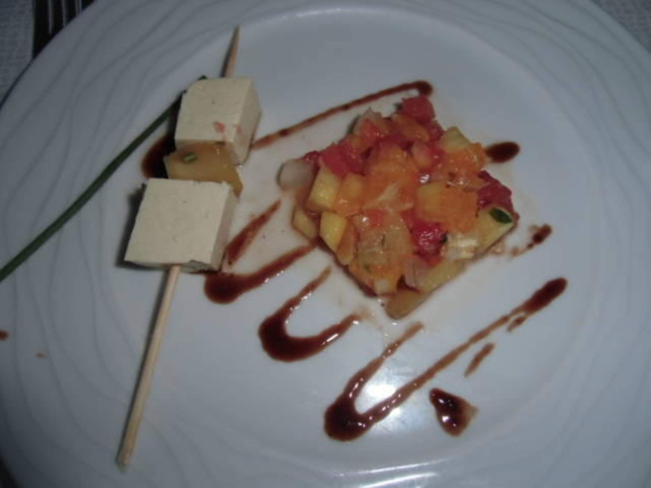 Vorspeise Käse mit Obst und Tomaten und Gurken