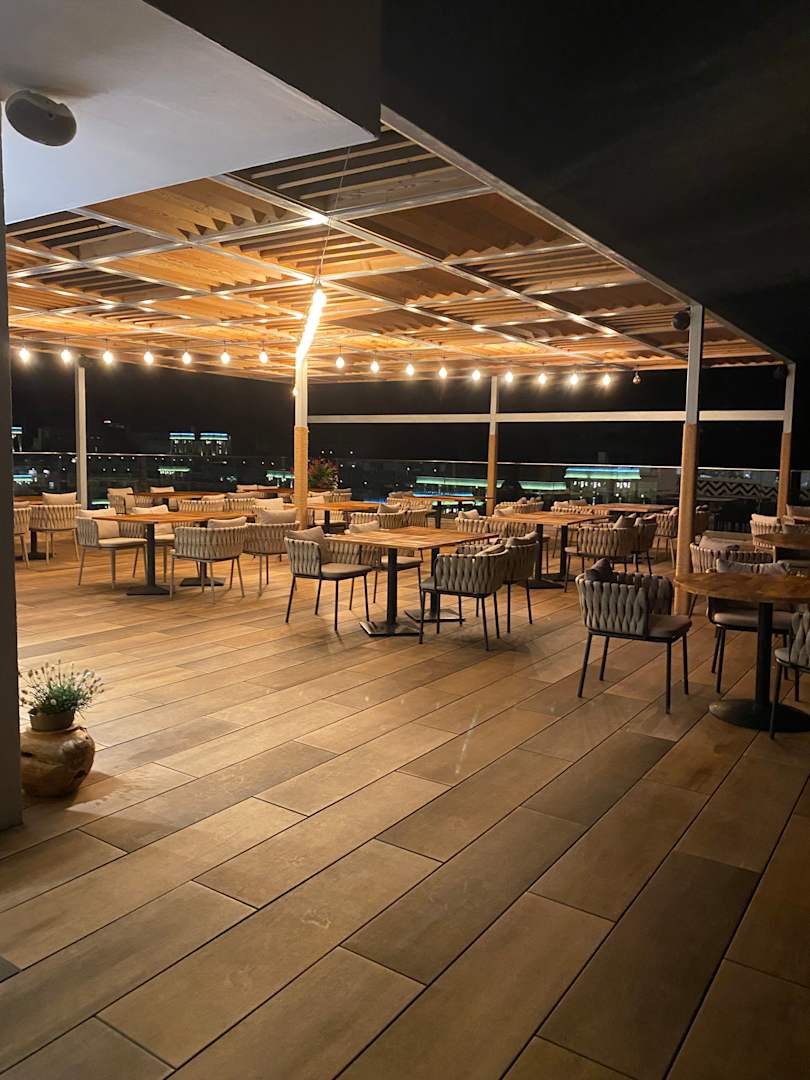 GastroSitzbereich im Sky-Restaurant am Abend