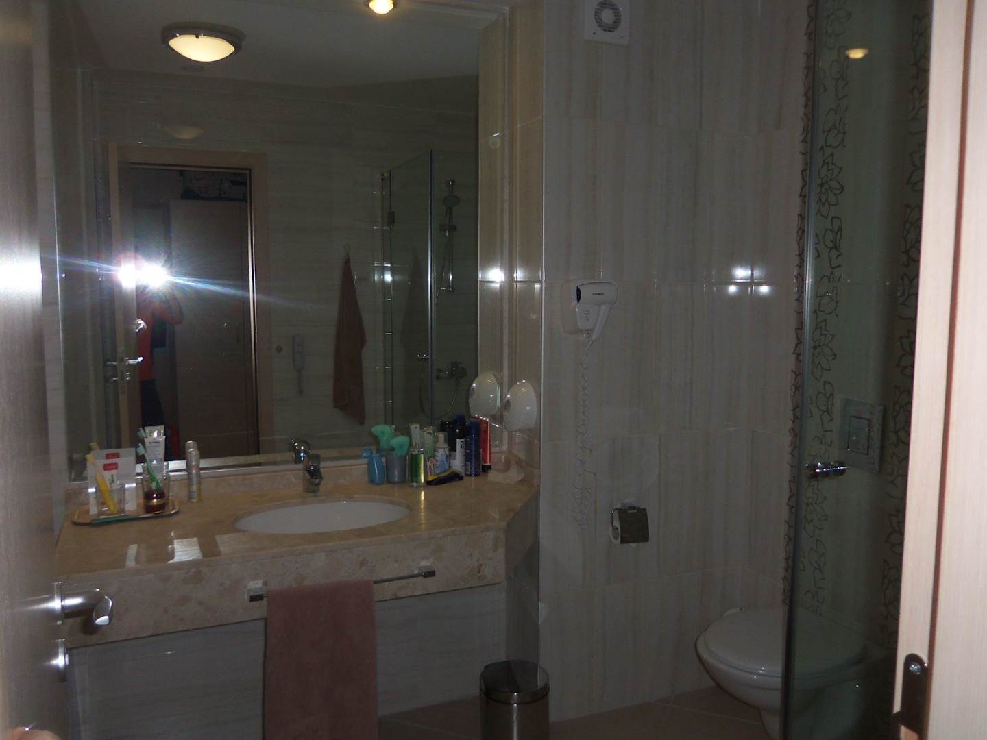 BadezimmerWie man sieht sehr sauber. Links hinter der Tür ist noch eine Badewanne und rechts die Dusche.