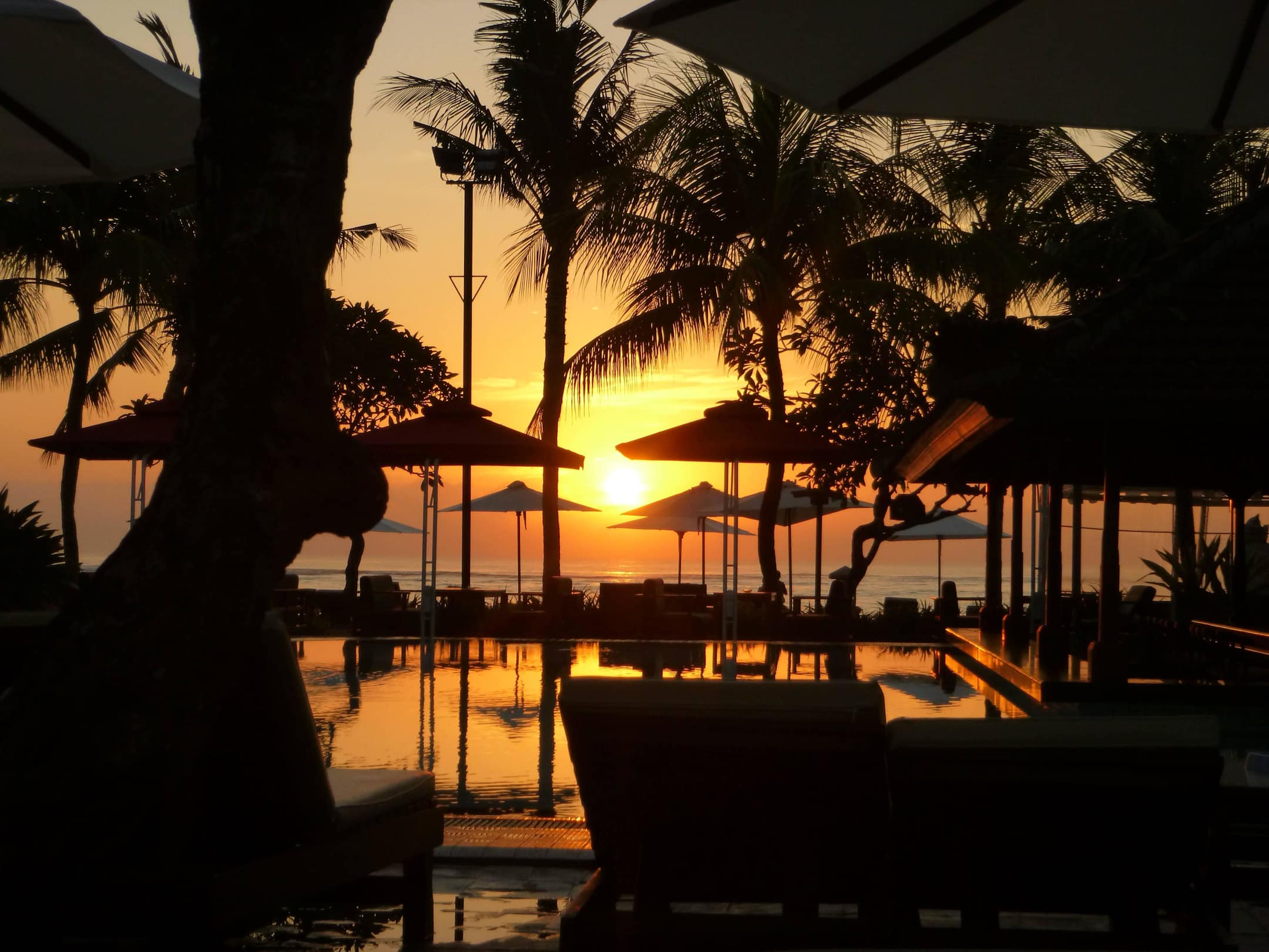 Sonnenaufgang; Blick von Terrasse Zimmer Beachwing