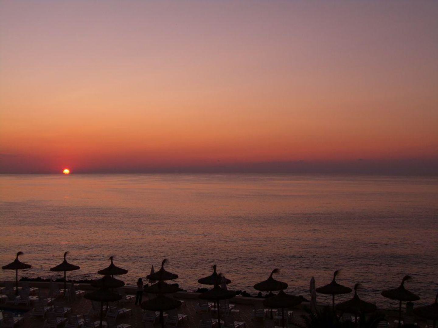 Das Bild ist morgens um halb 8h vom Hotel-Zimmer Gupotel Aguait aus aufgenommen worden. Man sieht die Sonnenschirme vom Pool und wie die Sonne aus dem Meer steigt. Traumhaft wenn mann im Bett liegt und diesen Ausblick hat!