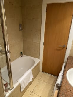 Das stinkende Badezimmer, welches nicht einmal abgeschlossen werden kann. Das Badezimmer stinkt sehr stark nach Urin und die Sauberkeit ist ebenfalls richtig schlecht