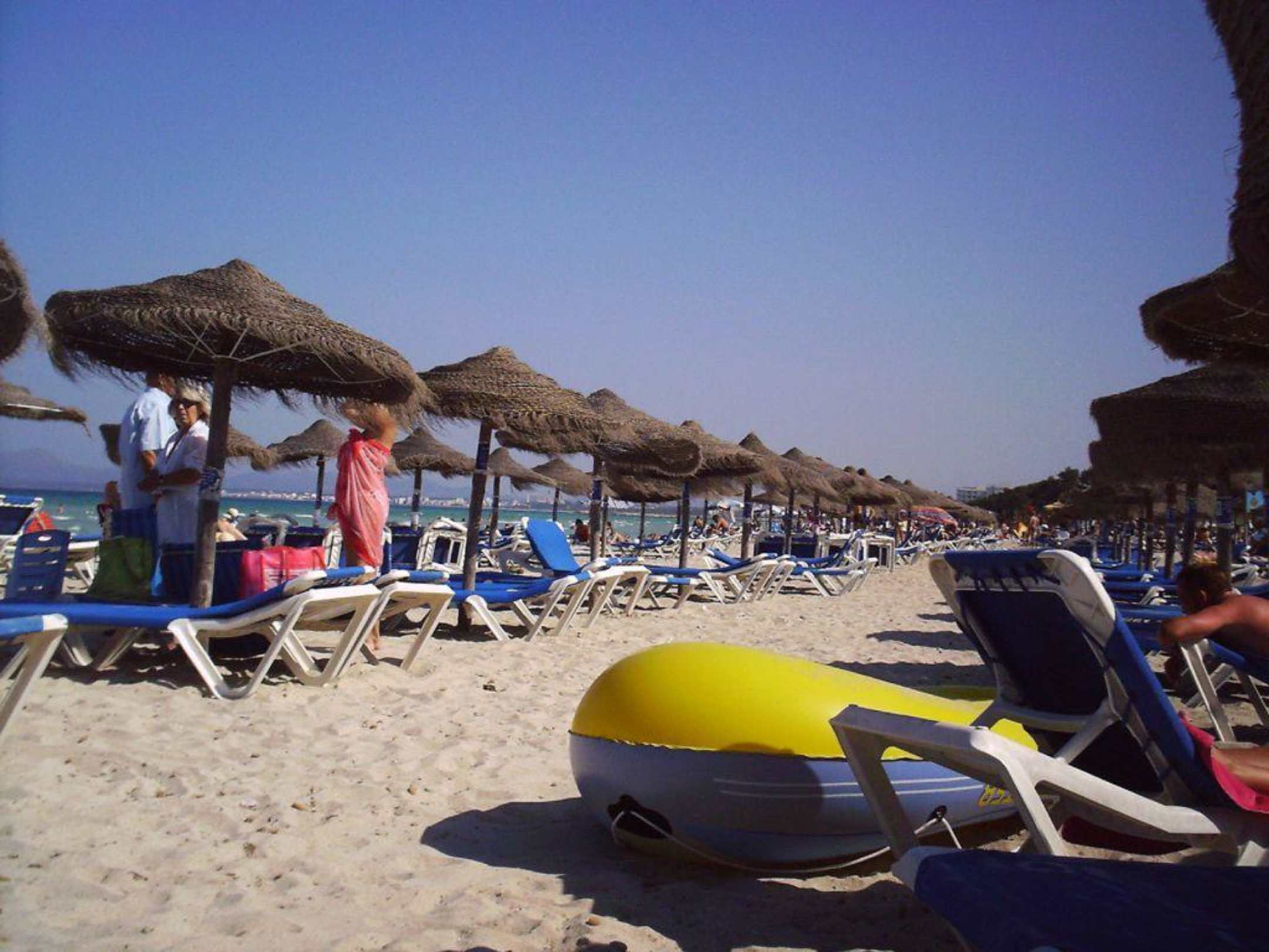 Strand mit Liegen ( Preis 2 Liegen und 1 Schirm 7 Euro pro Tag )