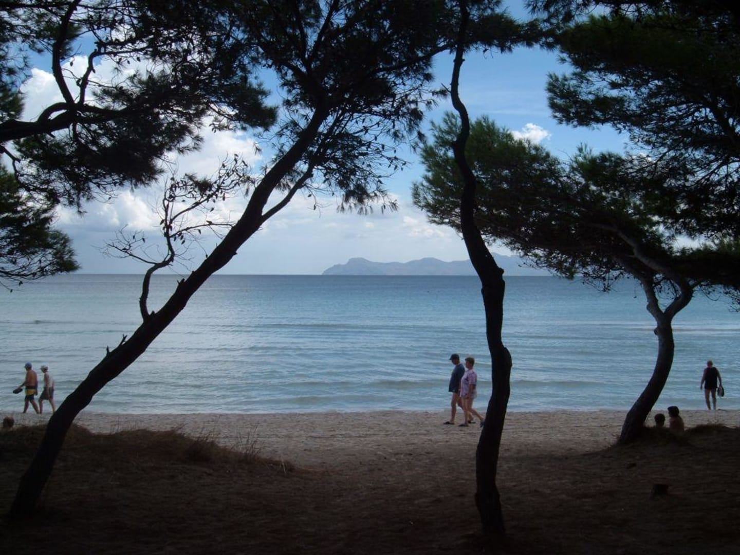 Blick durch Pinien aufs Meer