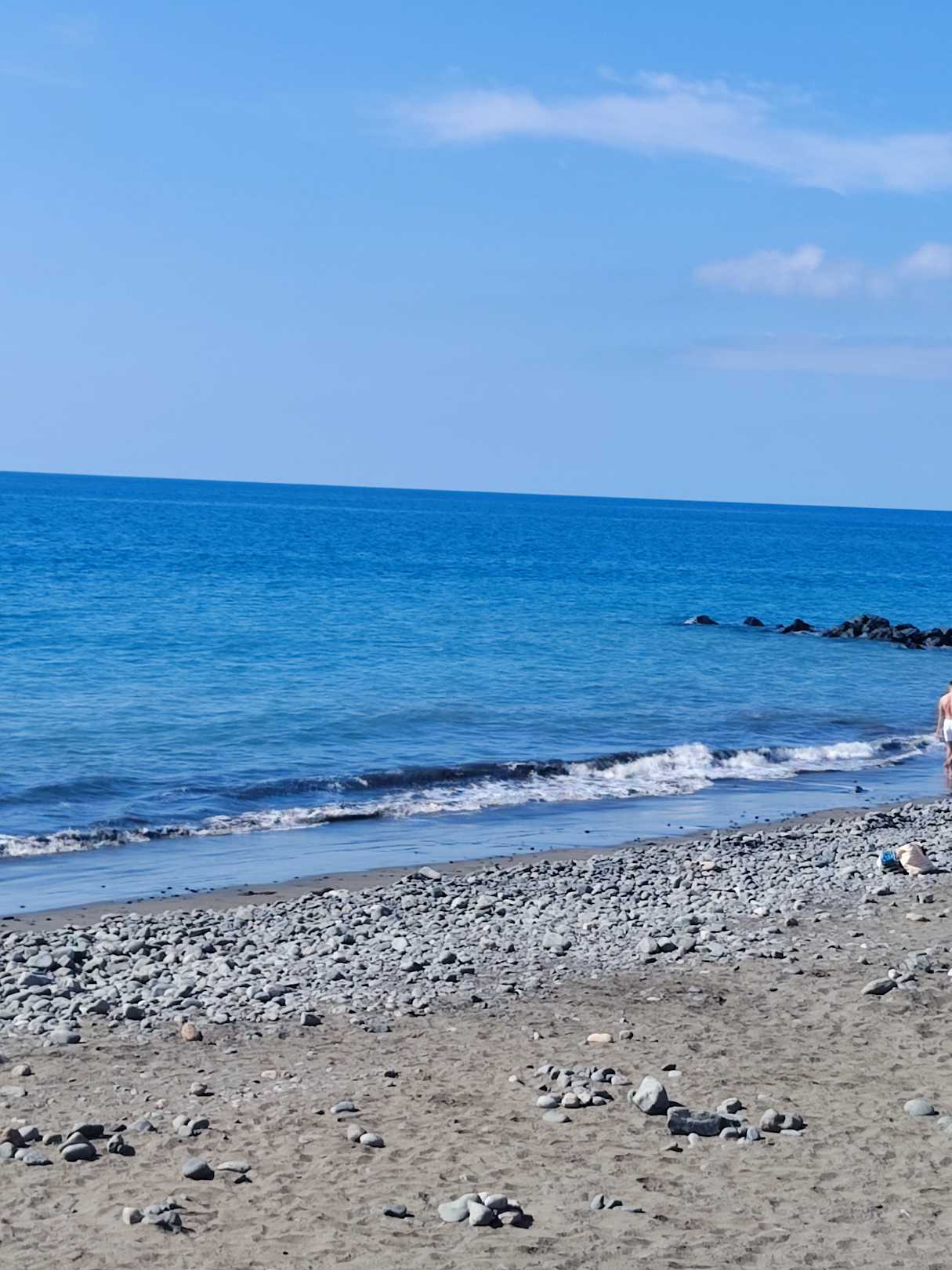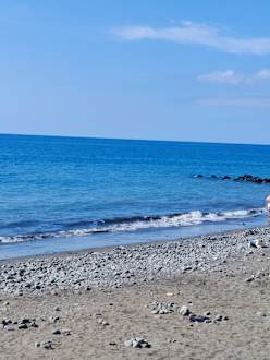StrandTeilweise steiniger und feinsandiger Strand mit Badeschuhe kein Problem. Strandburgen kann man trotzdem bauen.