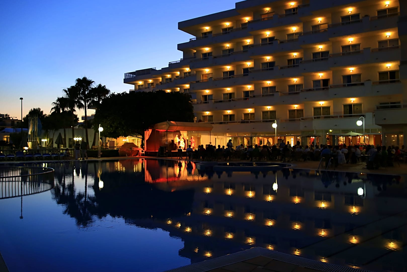 Blick über den Pool aufs Hotel