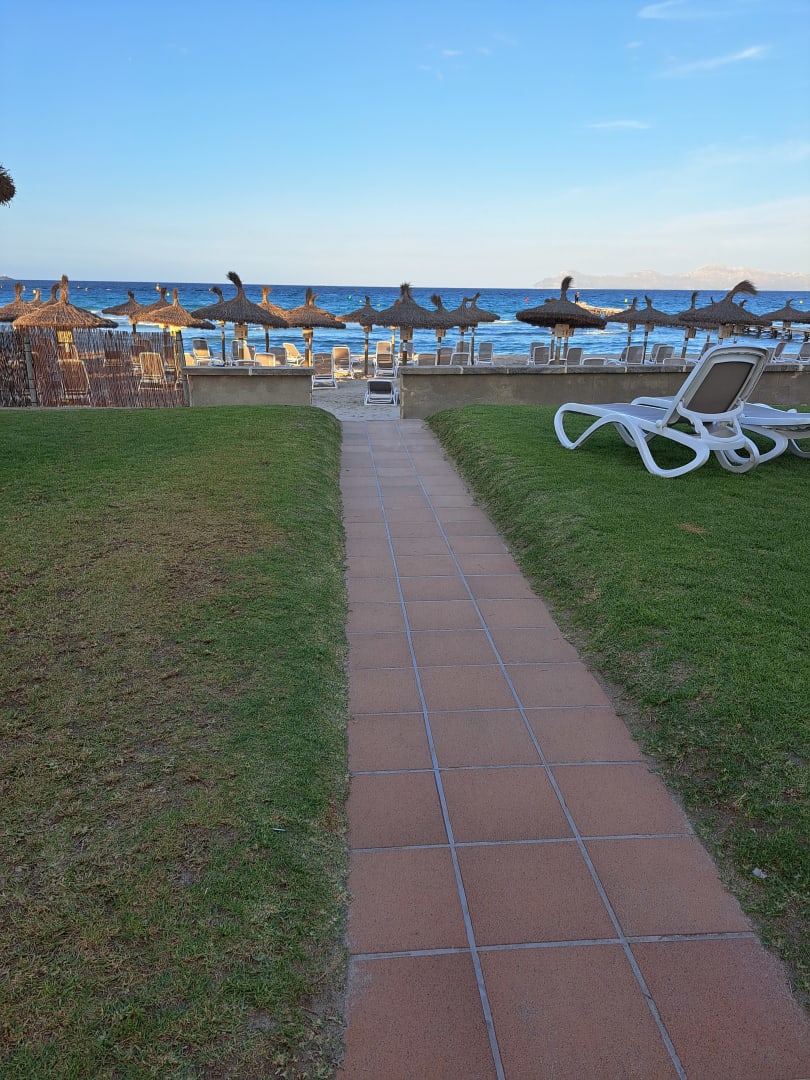 Außenanlage vom Hotel danach ist gleich der öffentliche Strand.