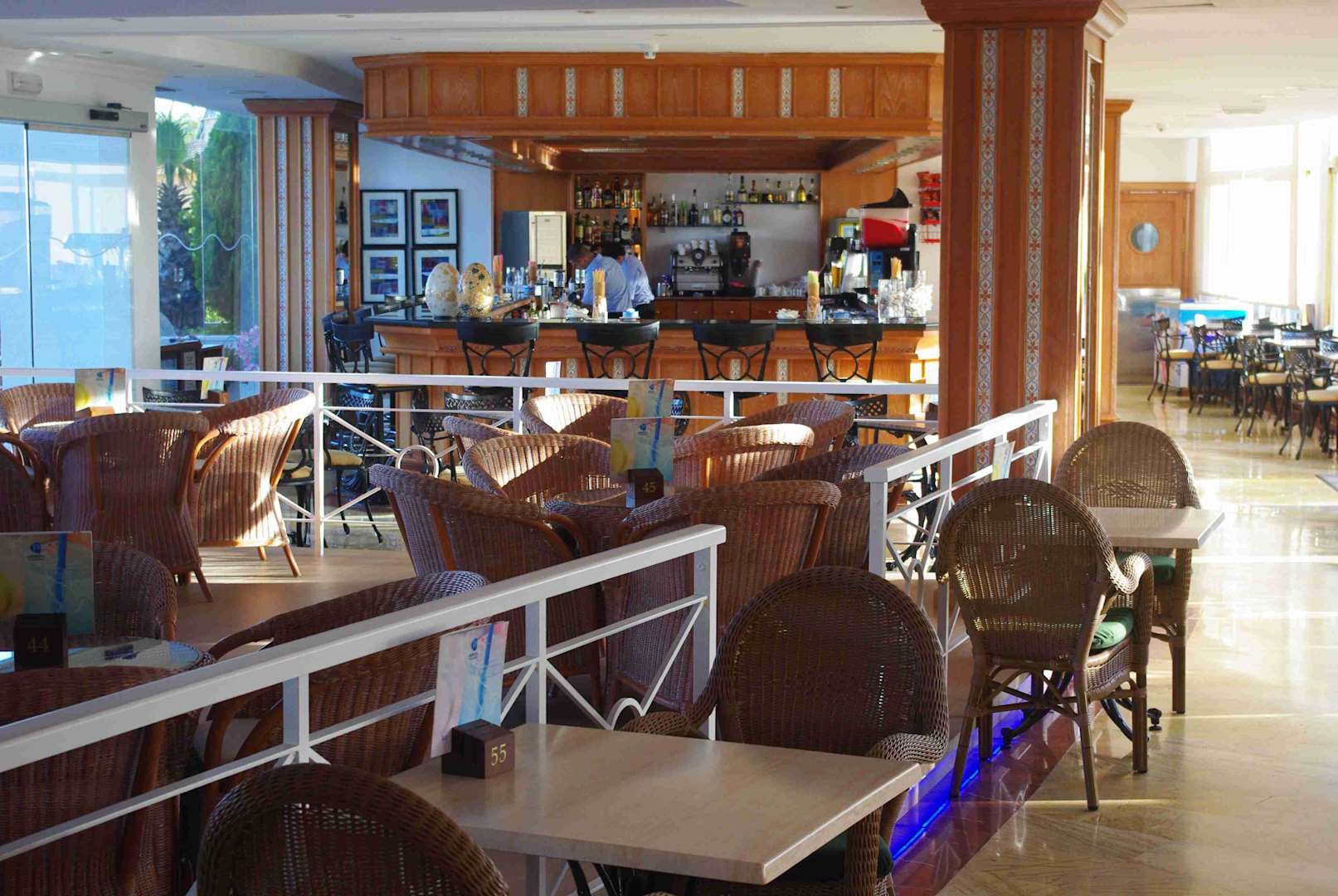 Bar-moderne Bestuhlung und Beleuchtung