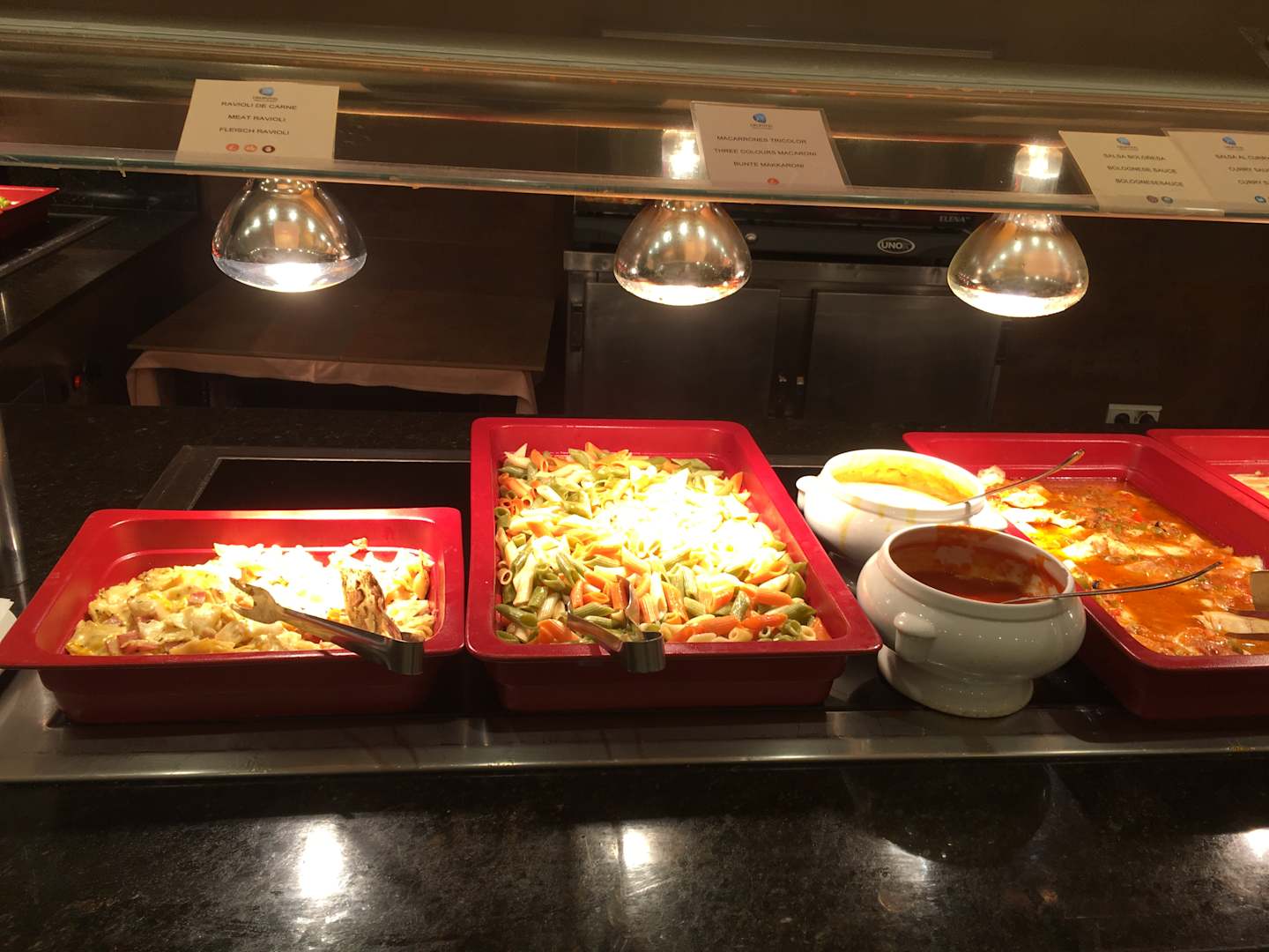 RestaurantNeben drei Menüs, auch drei Fisch- und Fleischvarianten und jeden Tag zwei verschiedene Pastagerichte.