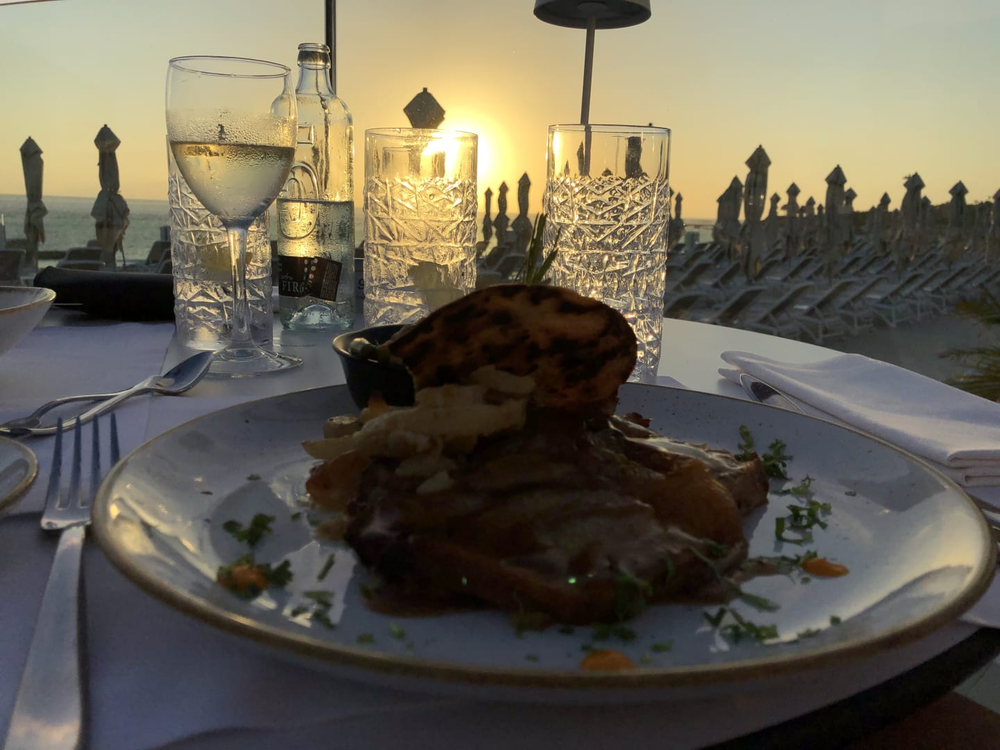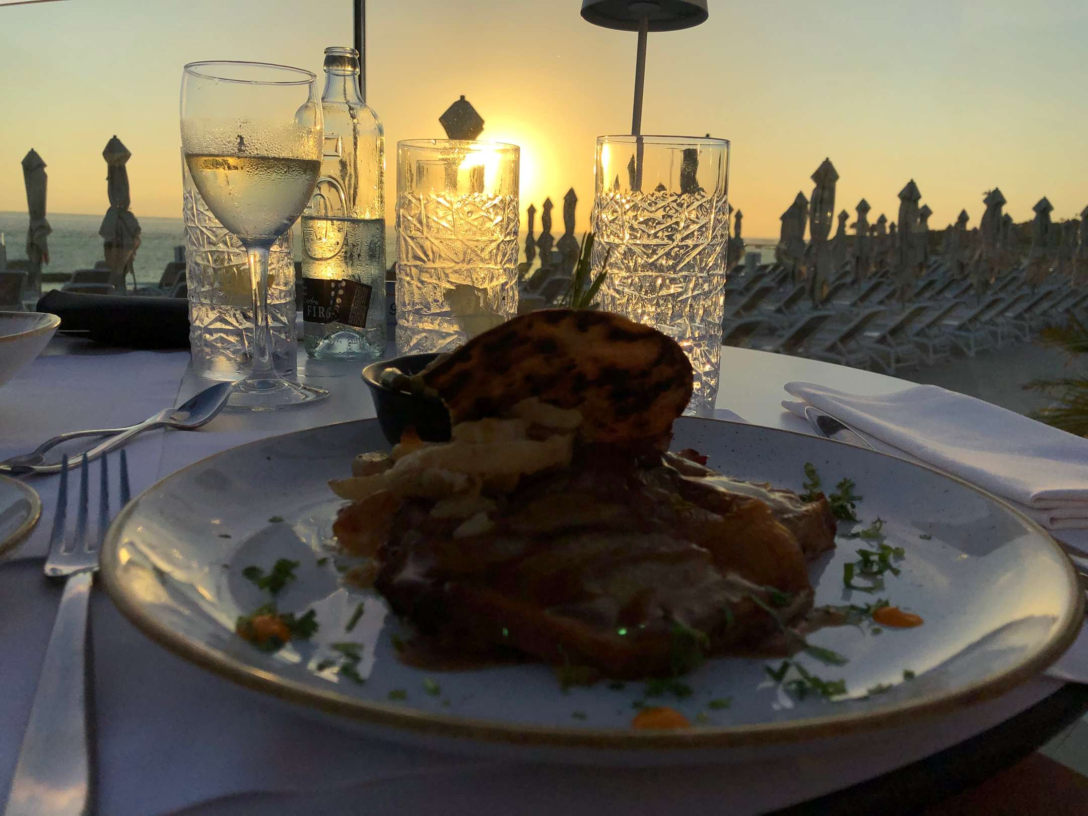 Abendessen im Sonnenuntergang (Terrasse Platinum Club)