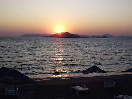 Sonnenuntergang von der Strandpromenade in Calis aus gesehen.