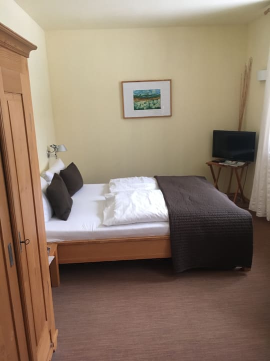 Zimmer mit Fernseher in die Ecke gequetscht auf einem instabilem Hocker