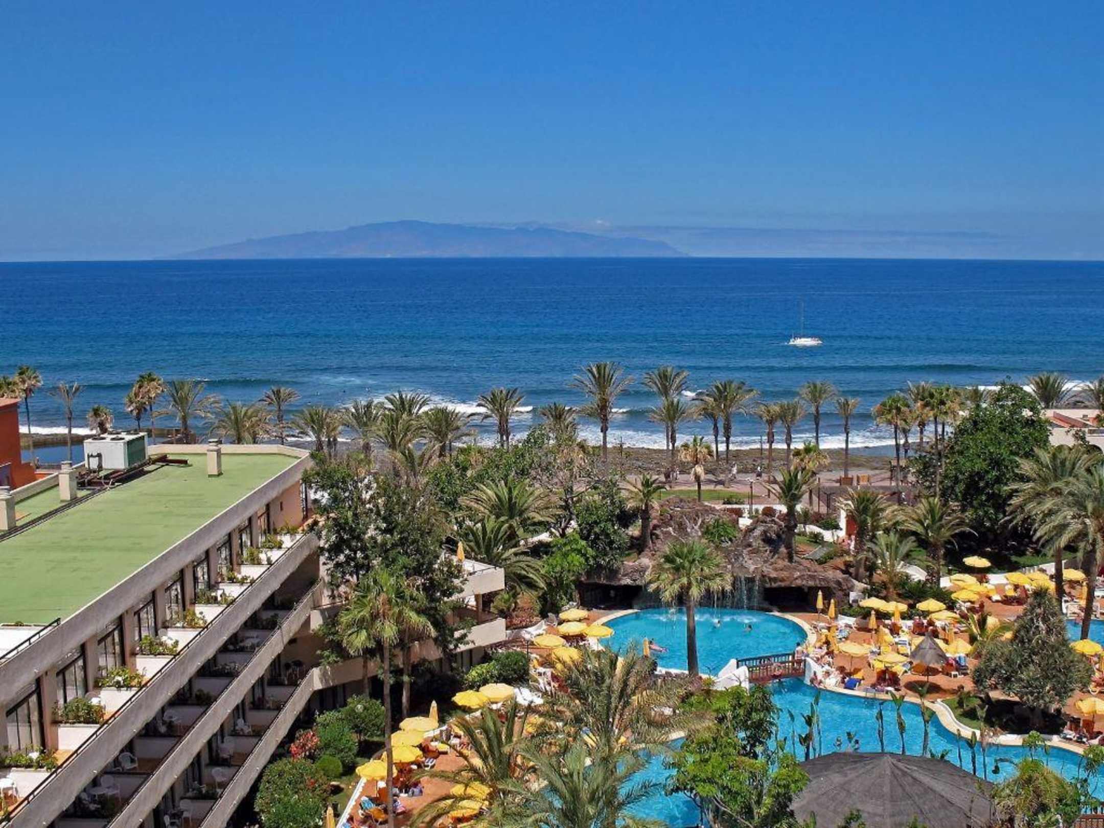 Panorama-Blick auf die Insel La Gomera und die Pool-Anlage von Hotel H10 Conquistador