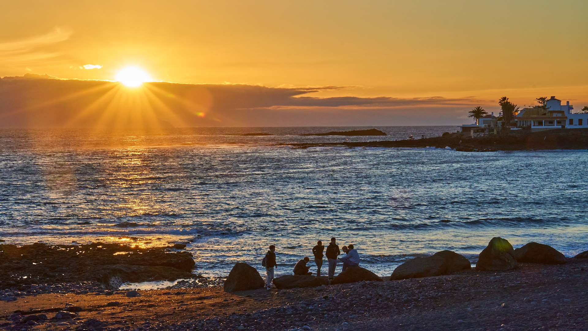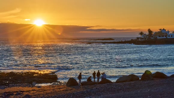 Blick in den Sonnenuntergang vom Infinity-Pool.