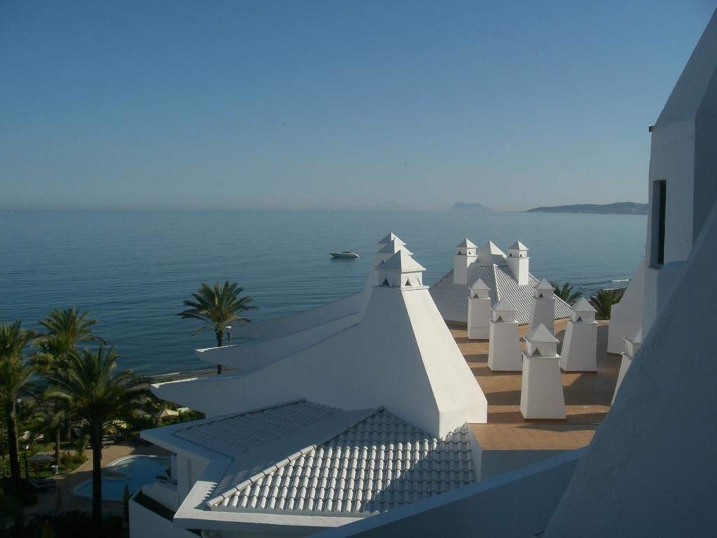 Blick aus unserem Zimmer aufs Meer bis Gibraltar