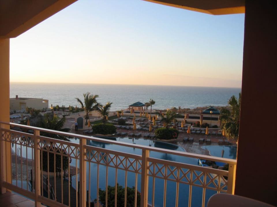 Ausblick vom Hotelzimmer/Balkon auf Pool und Meer.