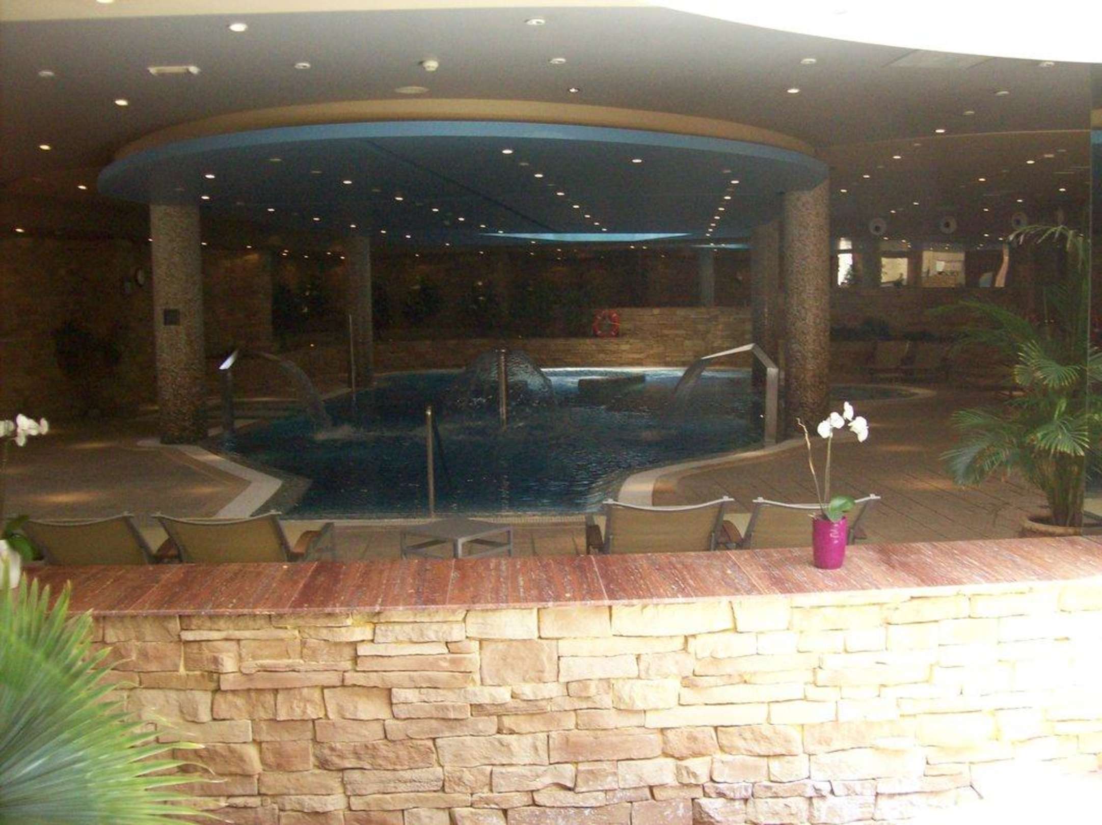 Großes Becken mit allerlei Strudeln, Liegen und "Wasserfällen"
