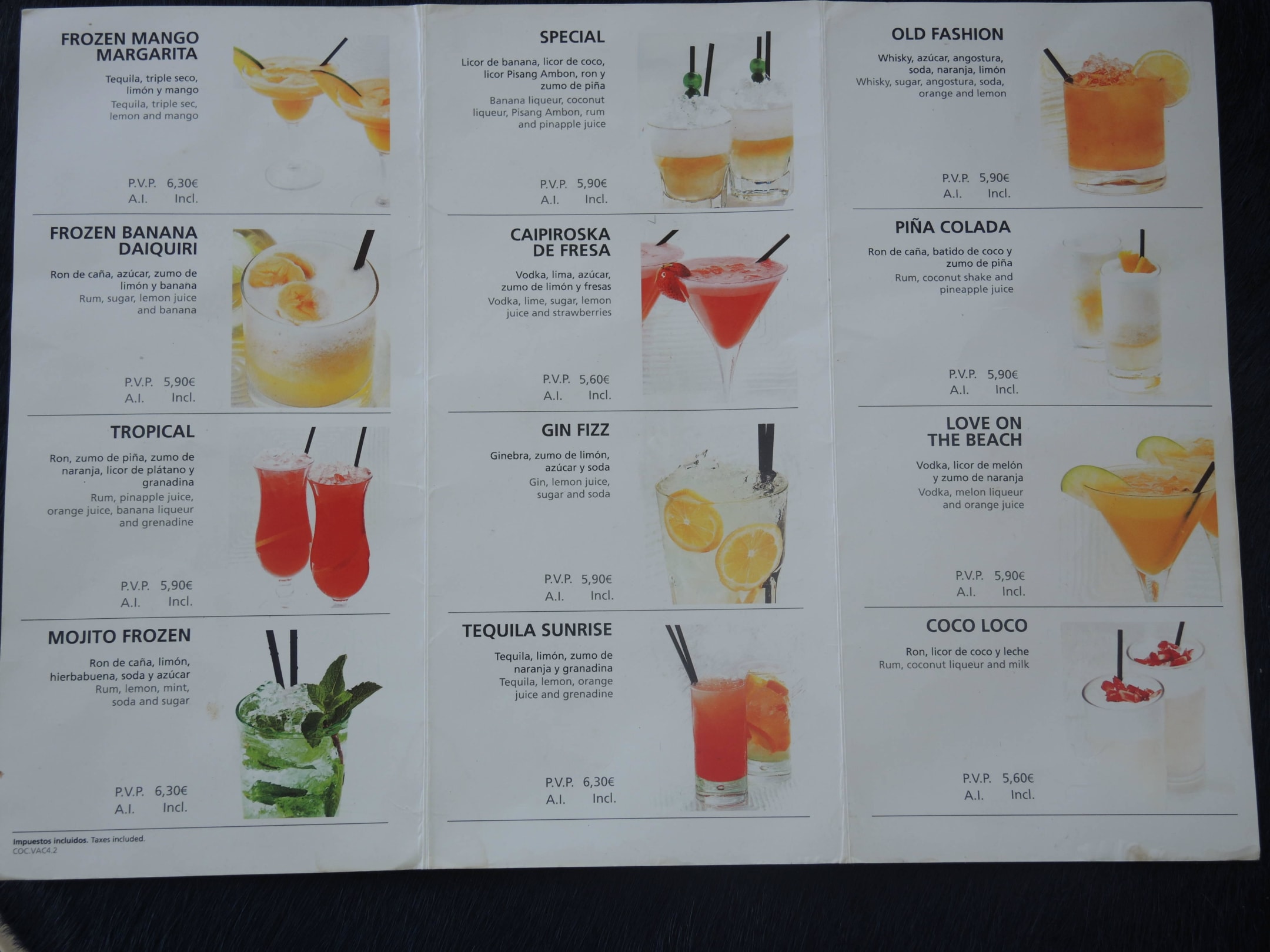 Preisliste Cocktails Ausschnitt