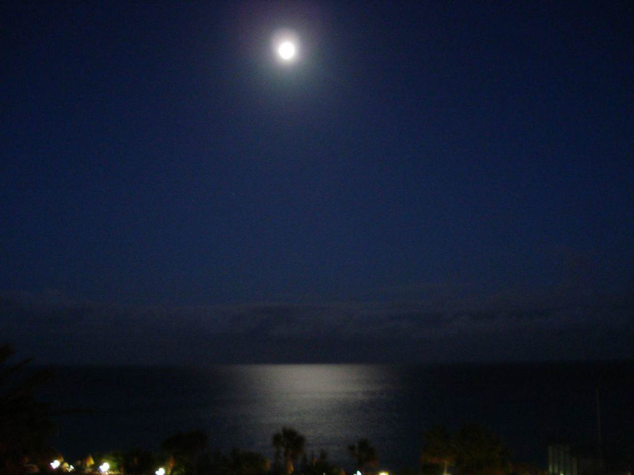 Der Vollmond spieglt sich im Meer Blick von unserem Zimmer