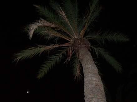 Palme im Garten bei Nacht