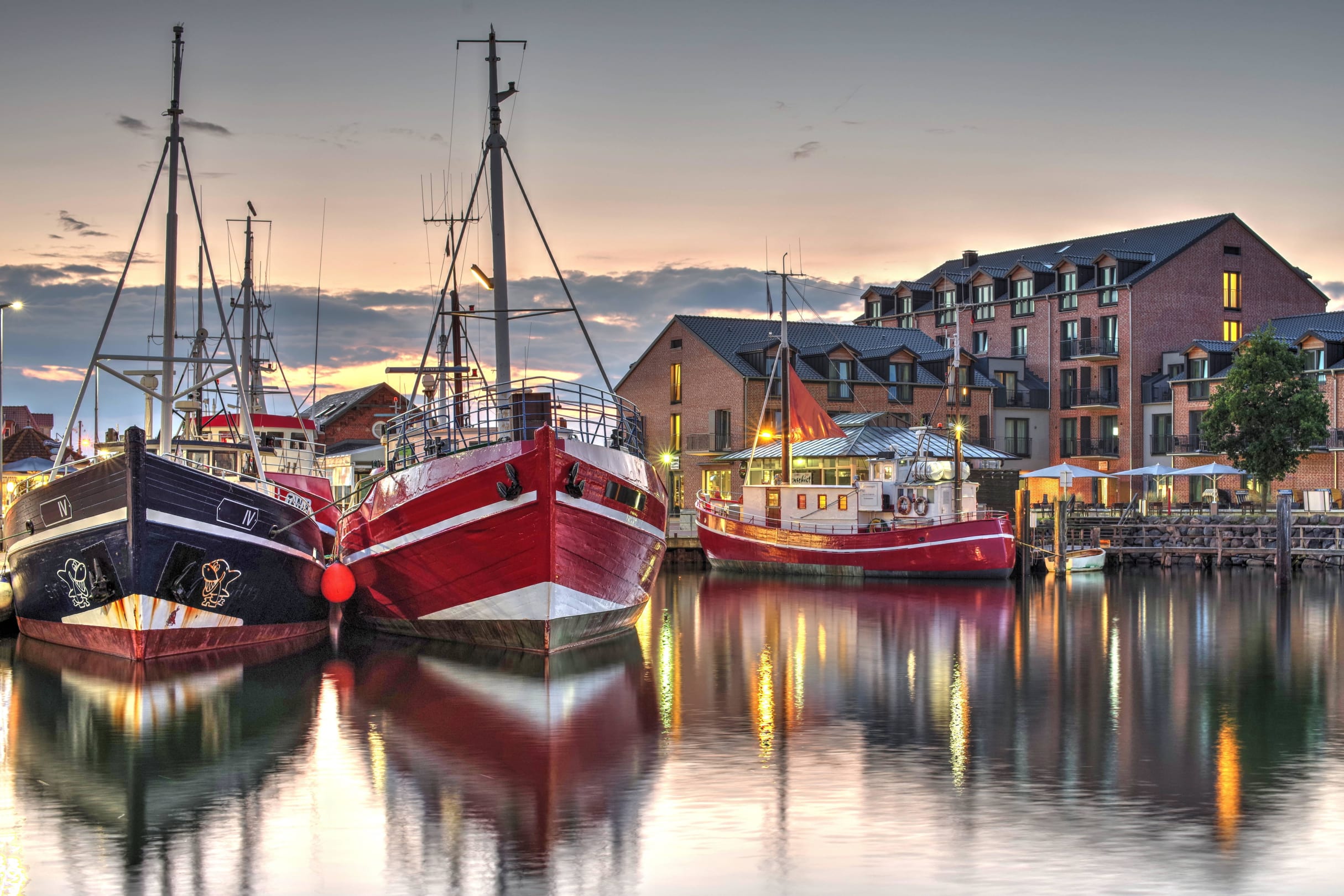 Hafenhotel Meereszeiten mit Schiffen