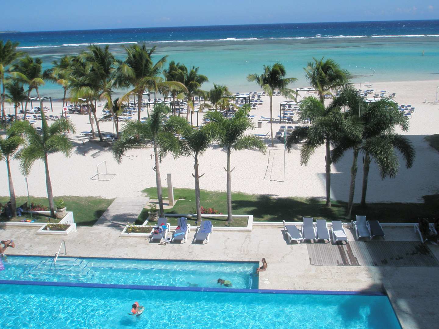 Ausblick vom Zimmer auf Pool und Meer