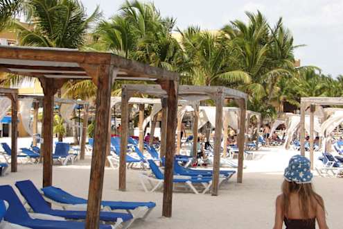 Strandliegen mit Sonnendächern