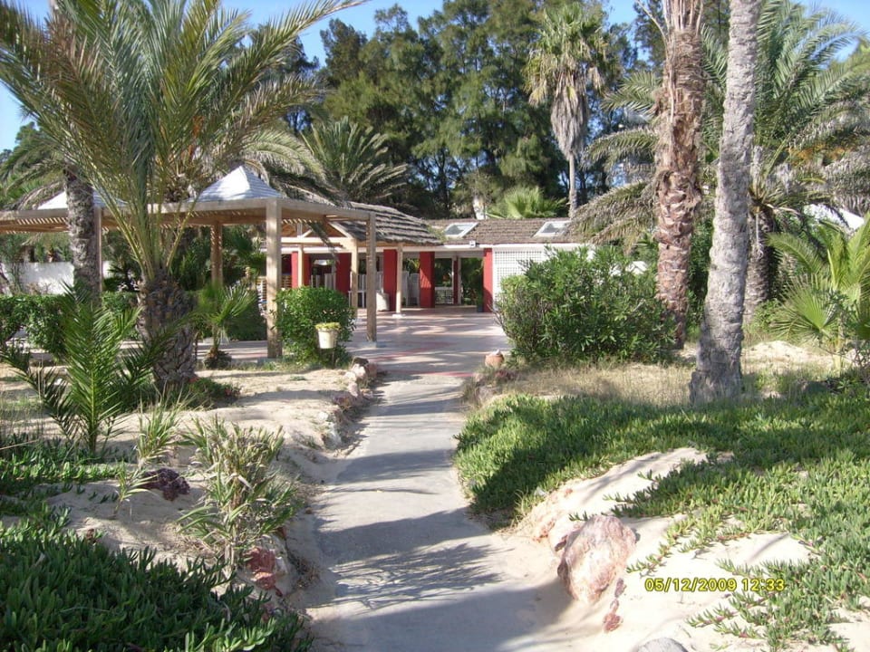 Vom Strand kommend ind Hotel zurück.