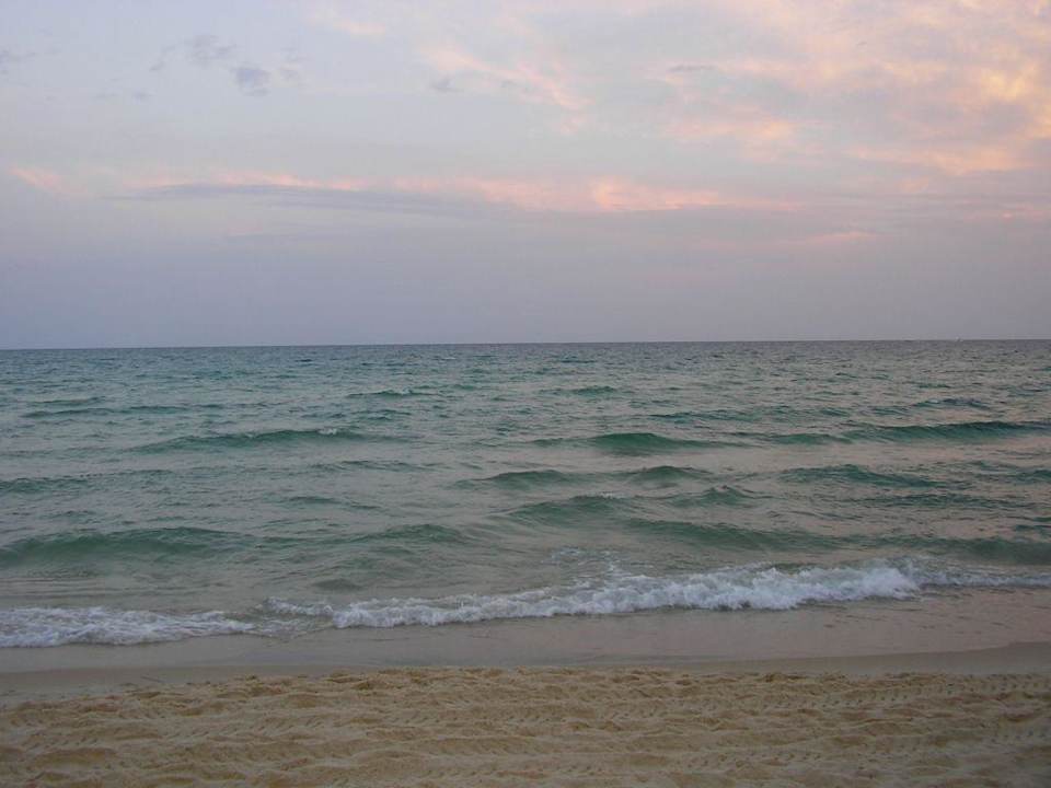 Meer/MorgendämmerungHammamet Regency Beach Hotel: Das Meer in der Morgendämmerung. Aufgenommen vor der Beach-Bar. Der Ausblick auf das Meer war sehr schön. Am Morgen war das Meer meist ganz ruhig und im Laufe des Tages kamen dann vermehrt Wellen. Leider war der Strand sehr schmutzig und der Müll landete dann z.T. auch im Meer.