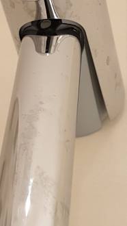 Kalkflecken auf der nicht einwandfreien Duschkopfhalterung im Zimmer 425