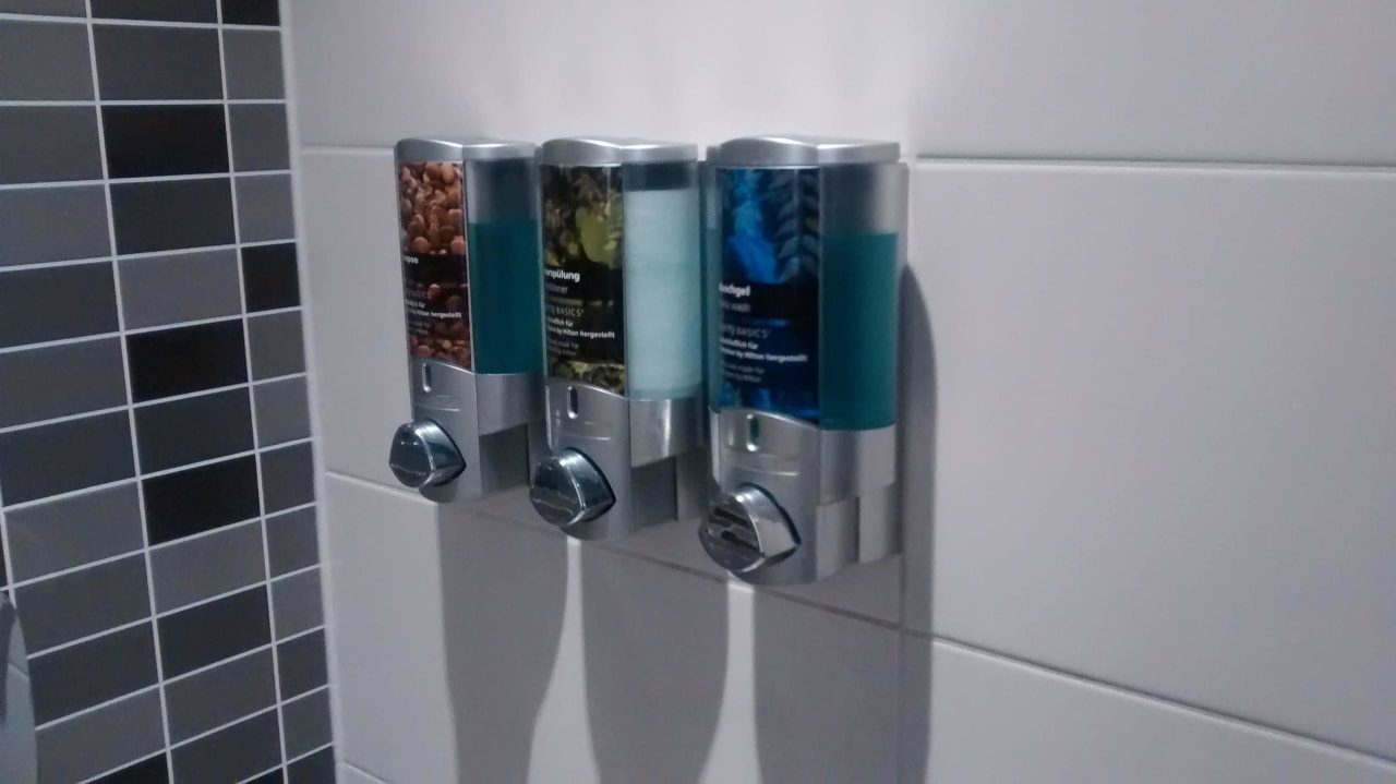 Im Bad gab es Shampoo, Spülung und Duschgel im praktischen Spender. Vollgefüllt und sauber. Finde ich persönlich super. Man muss nix mitnehmen und es gibt nicht soviel Müll, wie in manch anderen Hotels.