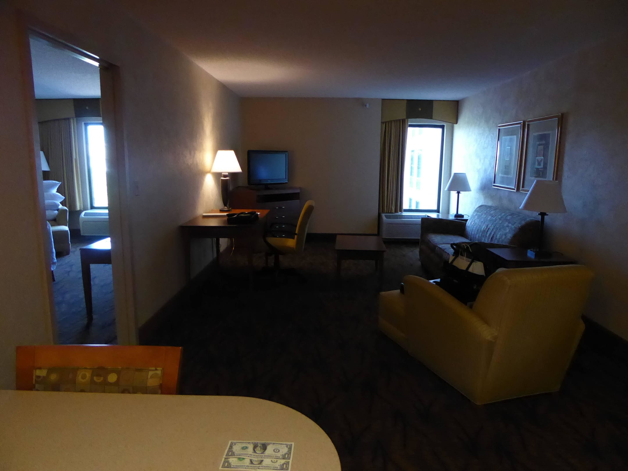 Wohnbereich mit Schlafzimmer links
