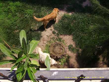 Die 3 Golden-Retrieverdas zuhause vor Block3,West- seite,freuen sich auch über ein trockenes Brötchen!Das ist Ihr Hundeleben.