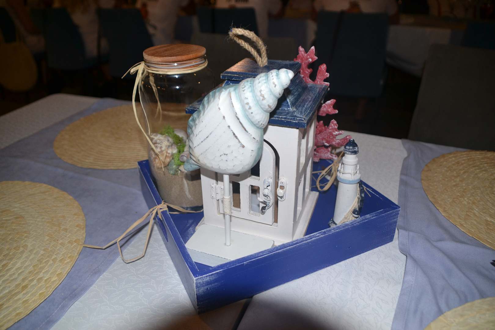 Tischdeko vom Fischessen am Strand.