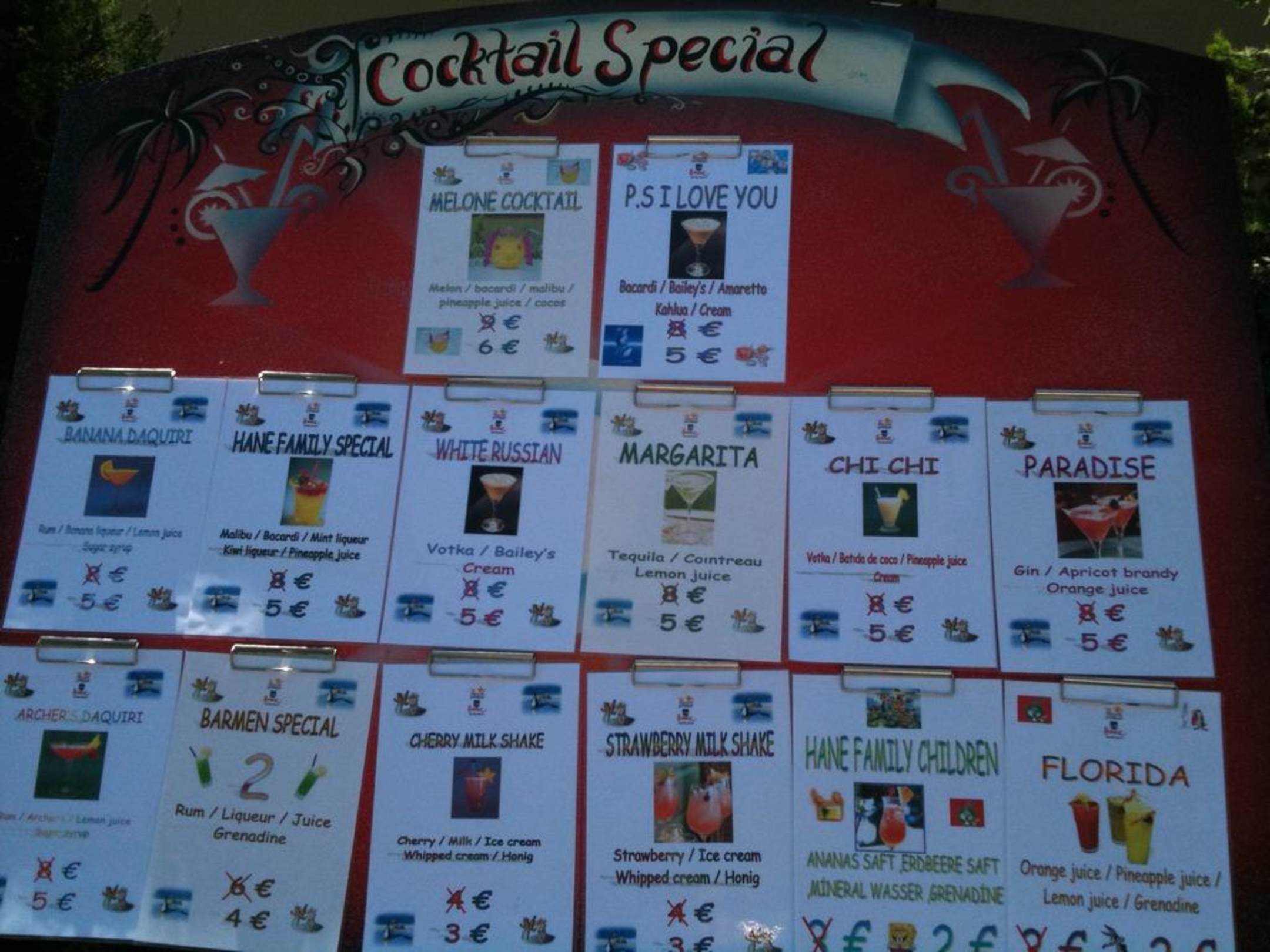 Preisliste von der Bar