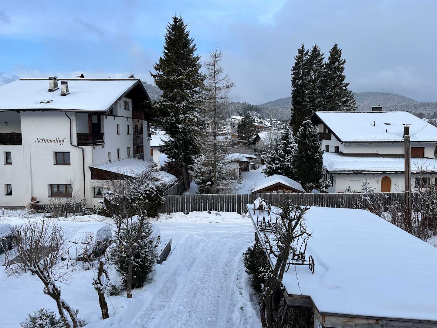 AußenansichtBlick vom Balkon des Zimmers in Richtung Hohe Munde (an diesem Tag noch nicht sichtbar, aufgrund Bewölkung)