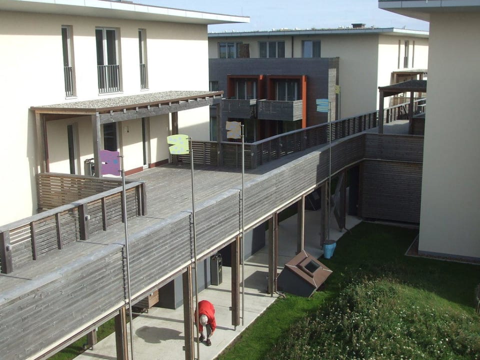 Diese Aufnahme zeigt ein Stück des doppelstöckigen - oberirdischen - Verbindungsgangs vom "Torhaus" zu den übrigen Gebäuden im Hapimag Resort Hörnum