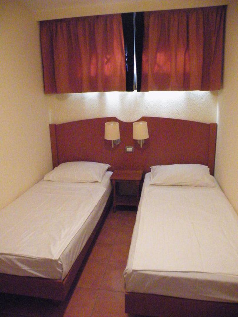 Zwei Einzelbetten. Alles relativ eng. Aber es reicht!