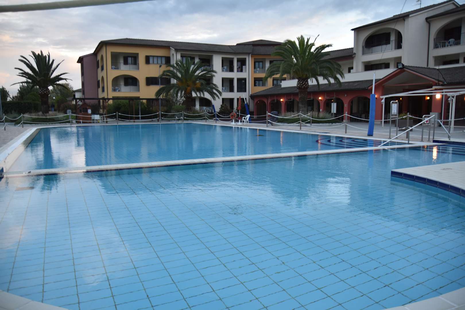 Swimmingpool aus anderer Perspektive, rechts hinten Gastgarten / Restaurant