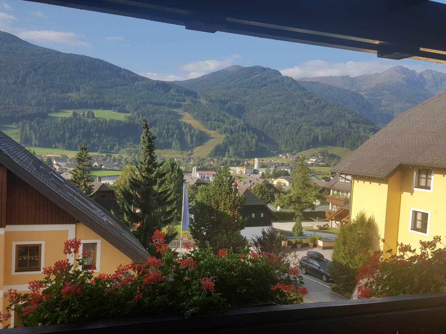 Blick aus der Ferienwohnung auf St. Michael im Lungau und den Katschberg